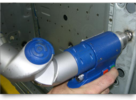 Moreover, the premium manufacturer has not only proven its spirit of innovation in the new BMW 7 Series – which is impressive due to its elegant design and state of the art technology – but also in the ‘refinement’ of the mobile measurement system: In order to measure the bolt more quickly, the BMW technicians have built an adapter that can be screwed onto the front of the FaroArm. The ball with which the measurements are usually made is removed. The sleeve is precisely one-tenth larger than the bolts. The engineer only has to place it over the bolt and check whether it rests satisfactorily on the plate – then he can carry out the measurements which only takes only about a second.
